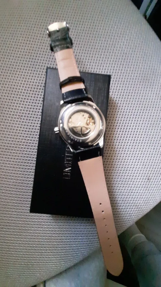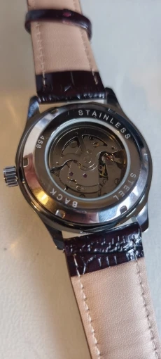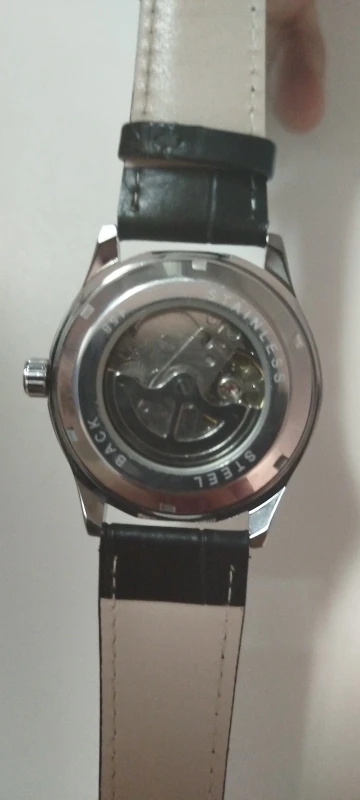 Das aufwendig texturierte Zifferblatt mit klassischen arabischen Ziffern sorgt für eine hervorragende Lesbarkeit und zeitlose Ästhetik. Ein besonderes Highlight für Technik-Liebhaber ist der Glasboden auf der Rückseite: Er gewährt einen faszinierenden Einblick in das arbeitende Uhrwerk. Beobachten Sie, wie Zahnräder und Unruh in perfekter Harmonie zusammenarbeiten – ein Erlebnis, das keine Smartwatch bieten kann.